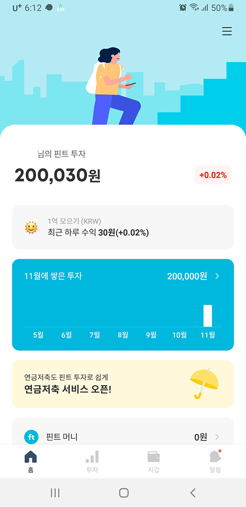 종잣돈 모으기의 개념으로 핀트 투자를 시작했습니다.